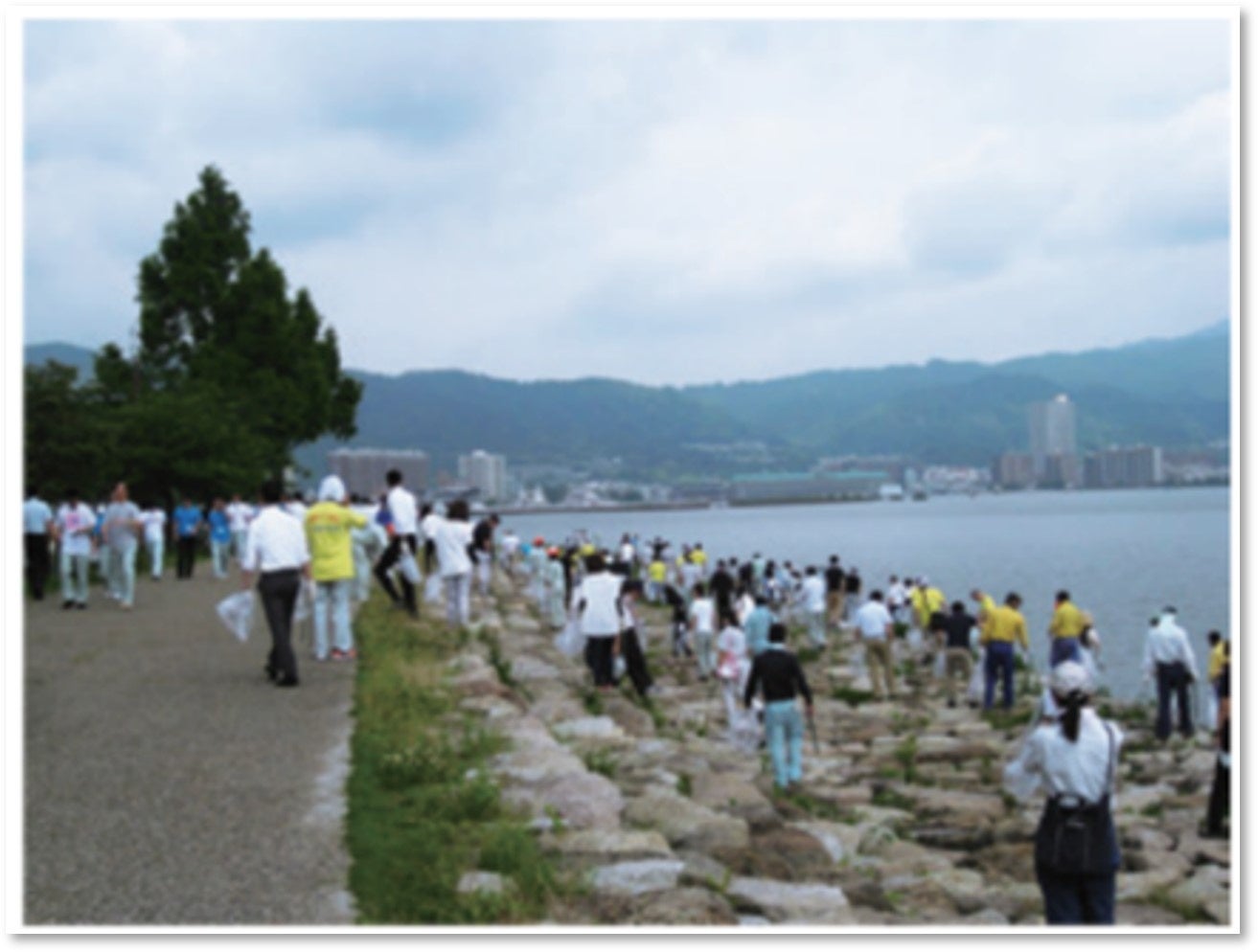 「琵琶湖条例」が施行の翌年(1981年)には、条例の施行日である7月1日を「びわ湖の日」と制定。きっかけとなった石けん運動から40年以上が経過した今も、7月1日前後には、県内各地で琵琶湖や河川の清掃活動が行われ、例年約10万人が参加しています。