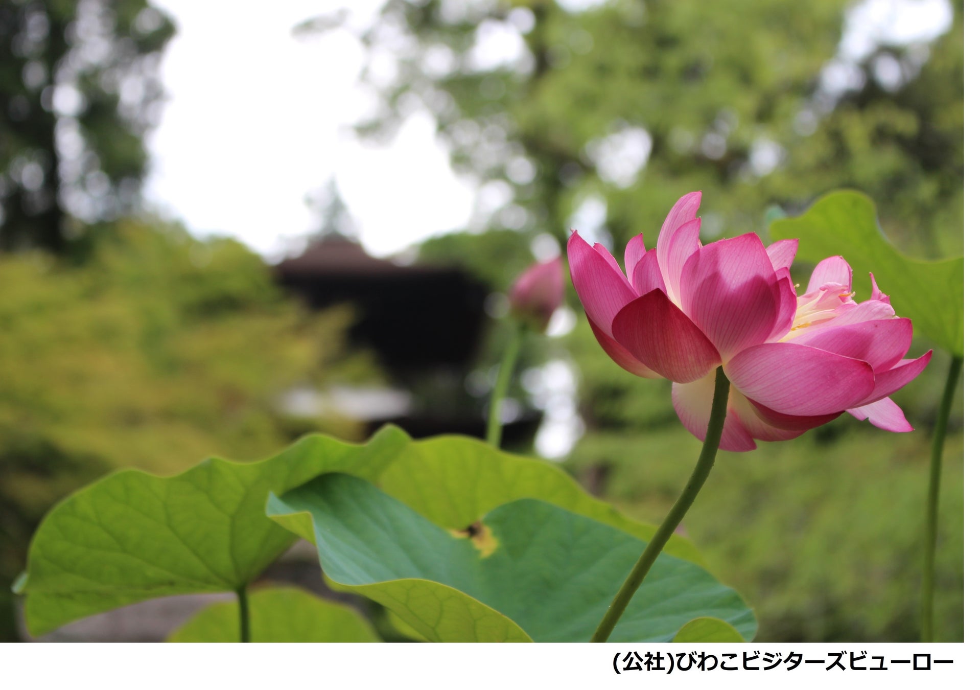 四季折々の自然が美しく、紫式部が源氏物語の着想を得たとされる石山寺。夏はまぶしい新緑につつまれ、心地よい風に吹かれながら、緑の中にもサルスベリや蓮を鑑賞できます。「光る君へ」の「大河ドラマ館」も新設され、オープン5か月足らずで入館者は10万人に達するなど大注目です。