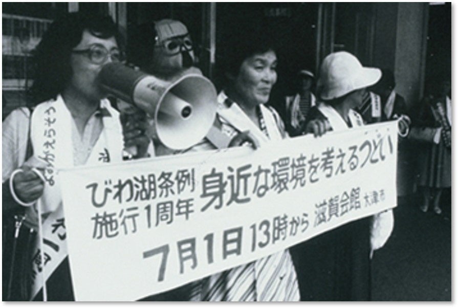 1977年に琵琶湖に淡水赤潮が大規模に発生したことをきっかけに県民主体の「石けん運動」が始まりました。この盛り上がりを背景に、 1980年7月1日、滋賀県は全国に先駆けて窒素、りんの排出規制等を定めた通称「琵琶湖条例※1」を施行しました。こうした動きが、滋賀県が「環境先進県」と呼ばれる所以にもなっています。