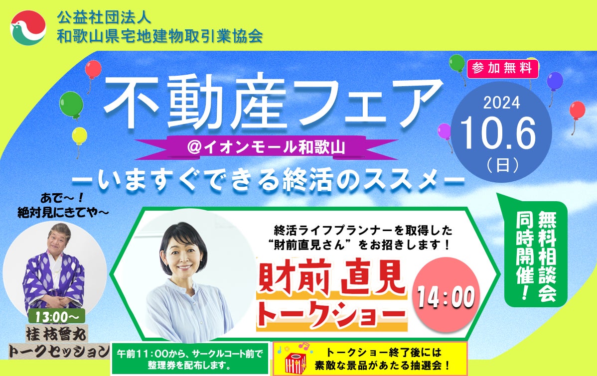 公益社団法人和歌山県宅地建物取引業協会(和歌山市太田143-3)は、10月6日(日)、