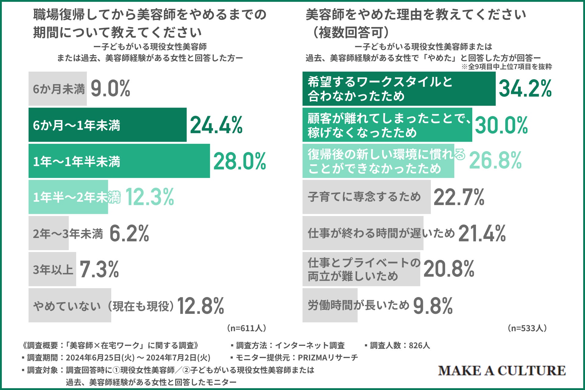 【美容師の働き方調査】約2人に1人が育休復帰後1年半未満に退職…8割以上が魅力的と回答した、美容師の技術を活かしながら子育てが可能な在宅ワーク事業とは