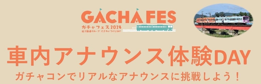 近江鉄道の電車や沿線に親しみを持っていただくことを目的として、『ガチャフェス』開催当日に多賀線 多賀大社前駅~高宮駅間を運行する電車内で、次駅の案内や地域イベントの紹介などの車内アナウンスが体験できるイベントを開催します。