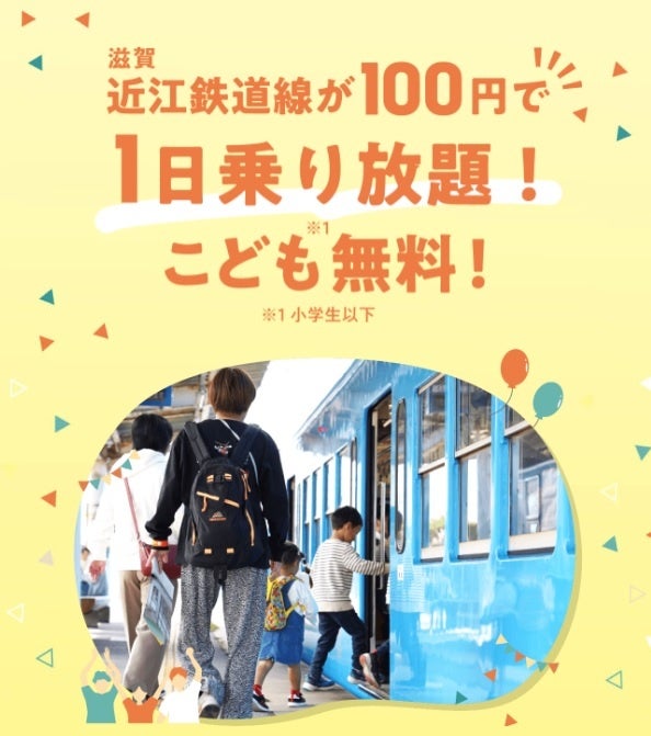 (2)近江鉄道線(電車)全線がおとな1日100円で1日乗り降り自由、こども(小学生以下)無料