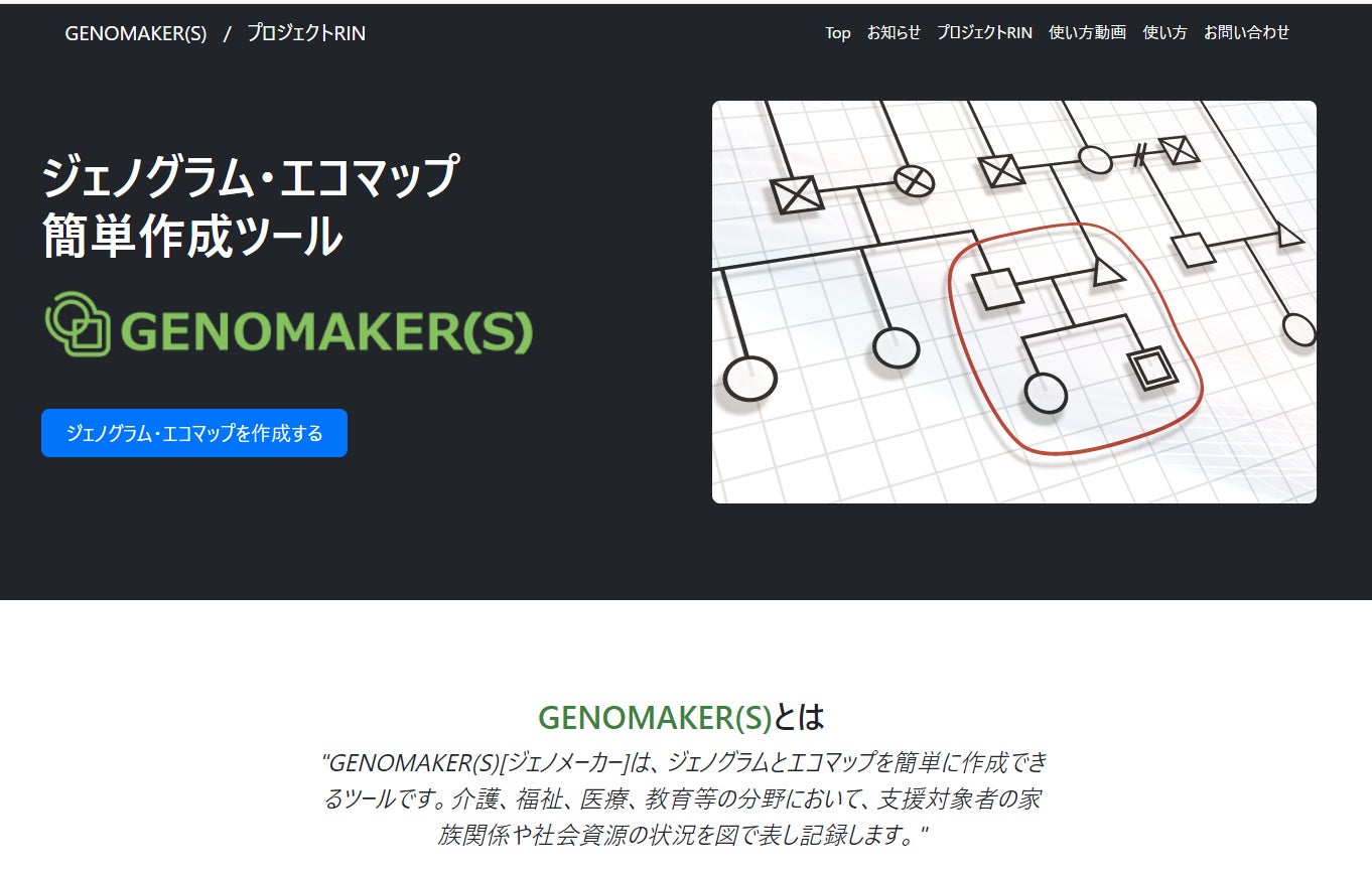 ジェノメーカーは、サービス利用計画書や個別支援計画の作成支援ツールであり、利用者の家族構成や周囲の人々、専門機関、団体などの社会的関係を視覚的に表現するジェノグラムやエコマップをWebブラウザ上で容易に作成できる機能を有している。利用登録なしに誰でも使える事から様々な事業所で利用されている。また、当ツールは就労支援事業所の利用者によって開発された画期的なものでもある。両システムの連動は2024年6月21日より始まっている。