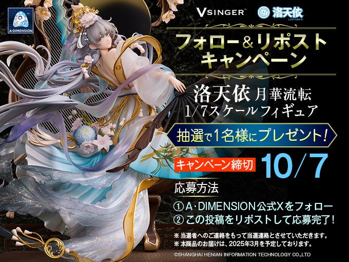 A・DIMENSIONの公式X(@adimension_toy)をフォローし、対象のX投稿をリポストいただく事で、1名様に『洛天依(ルオ・テンイ) 月華流転 1/7スケールフィギュア』をプレゼントいたします。
