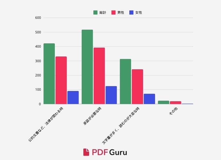 大多数の回答者が文書をPDFに変換することがほとんどなく、紙媒体に大きく依存していることを裏付けています。