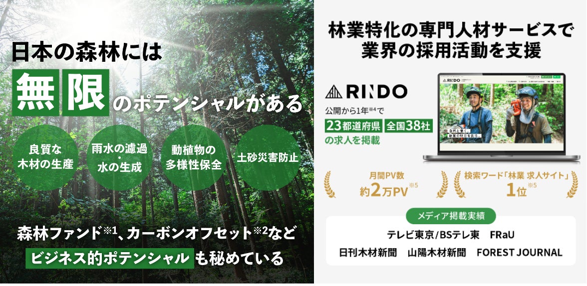 【株式会社RINDO】林業の未来を創る!林業特化型の求人サイト「RINDO」がFUNDINNOで株式投資型クラウドファンディングを開始