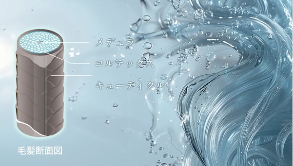 私たちが特にフォーカスしているのは髪の毛の内部の約85%〜90%を占めるとされるコルテックス