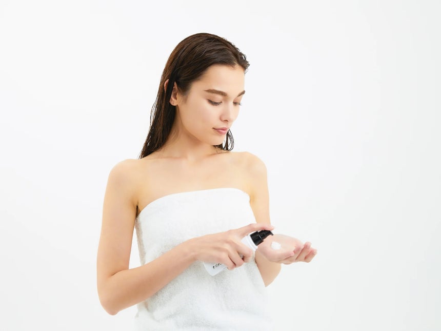 シャワーの後にタオルドライをしっかりしていきます。この時に水分がなるべく少ない状態にしておくことで、プロダクトの成分の効果を最大限に引き出すことができます。そしてドライの時間を減らすことができるのでドライヤーの熱による髪への負担を減らすことができます。