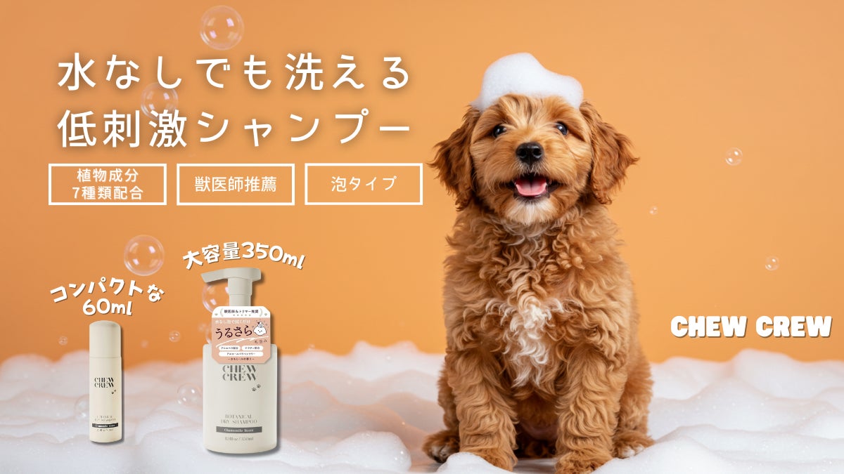 本製品は、水を使わずに泡でふき取るだけで、抗菌・消臭・保湿ができるドライタイプの犬用シャンプー。アロエやティーツリーなど植物成分を配合し、デリケートな犬の肌をやさしく守ります。獣医師と連携し、国際安全基準に基づいて1年かけて開発されました。
