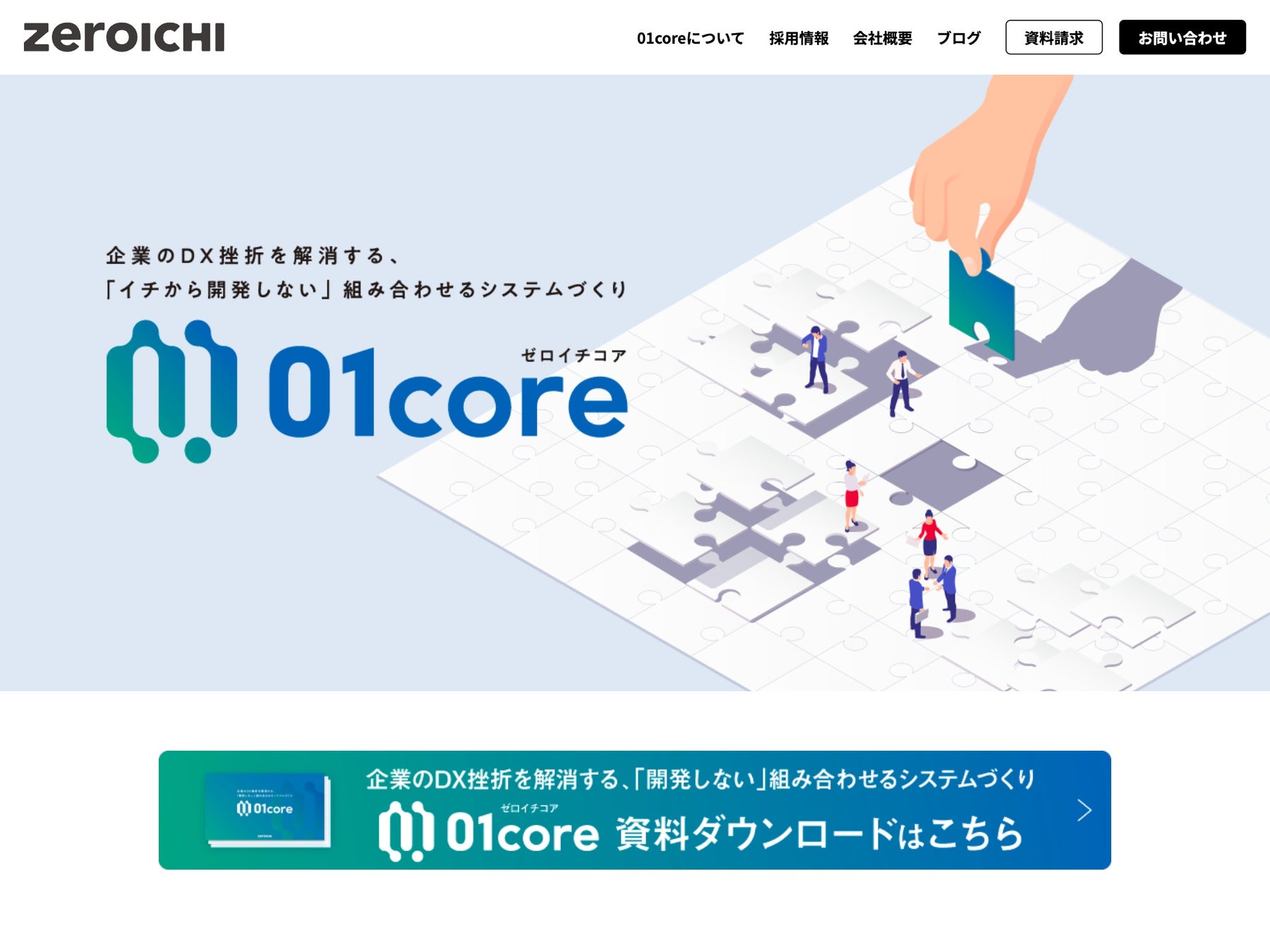 ゼロイチは、「企業のDX挫折を解消する、1から開発しない組み合わせるシステムづくり」を掲げ、2016年の創業以来、様々な企業様のDXスクラッチ開発で3,000件以上の課題解決に貢献してまいりました。2024年には、高リスク・高コスト・長納期なDXスクラッチ開発に終止符を打ちたいという思いから、システム生成プラットフォーム「01core(ゼロイチコア)」を開発し、DX挫折の大幅減少を実現しました。