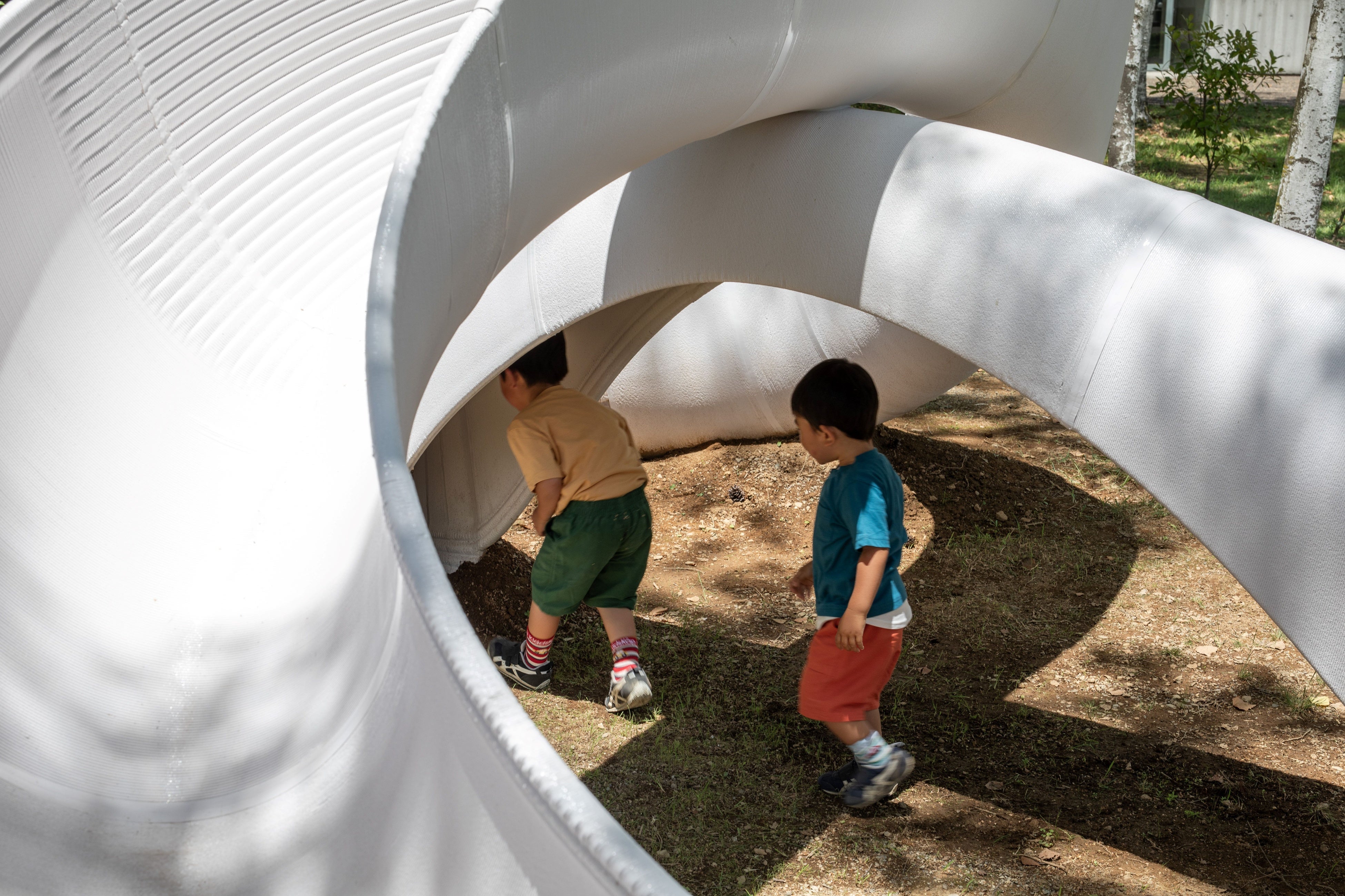山梨県北杜市の芸術文化施設<清春芸術村>(運営:公益財団法人清春芸術村 理事長/吉井仁実)が行う「こどものための建築プロジェクト」の第2弾として、施設内に新たな子供向けの建築がお目見えしました。この建築は「ホワイト・ループ(White Loop)」と名付けられた3Dプリンタで制作された滑り台です。設計は建築家でVUILD(ヴィルド)を主宰する秋吉浩気氏。今まで清春芸術村が力を入れてきた「アート」「建築」に加え、さらに「遊び」の要素がプラスされました。これから迎える本格的なAI時代を前に、芸術文化と「遊び」という側面から、子供たちの感性を育んでいきます。