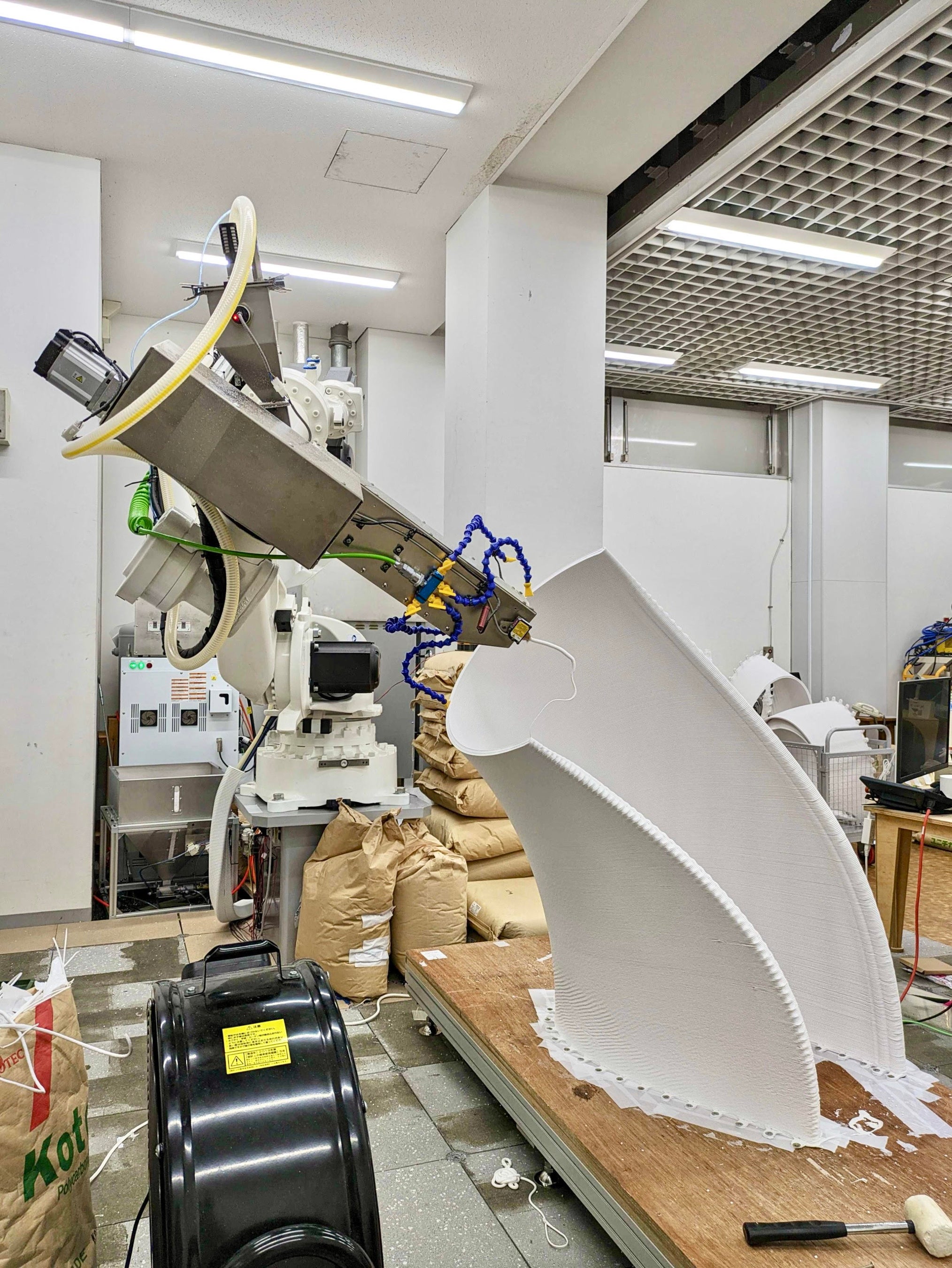 その第2弾の設計をお願いしたのは、若手建築家の中でも他とは一線を画す活動をする秋吉浩気さんです。秋吉さんは大学院でデジタルファブリケーションを学び、卒業後は建築テック系のスタートアップ企業<VUILD>を創業、「建築の民主化」を目指す活動をしています。今回は巨大な3D プリンタを使い、今まで世界でも前例のない「メビウスの輪」のようなそれ自体が自立する滑り台を生み出しました。ぜひ美術館へ実際に脚を運んでもらい、子供たちに体感して欲しいと願っています。