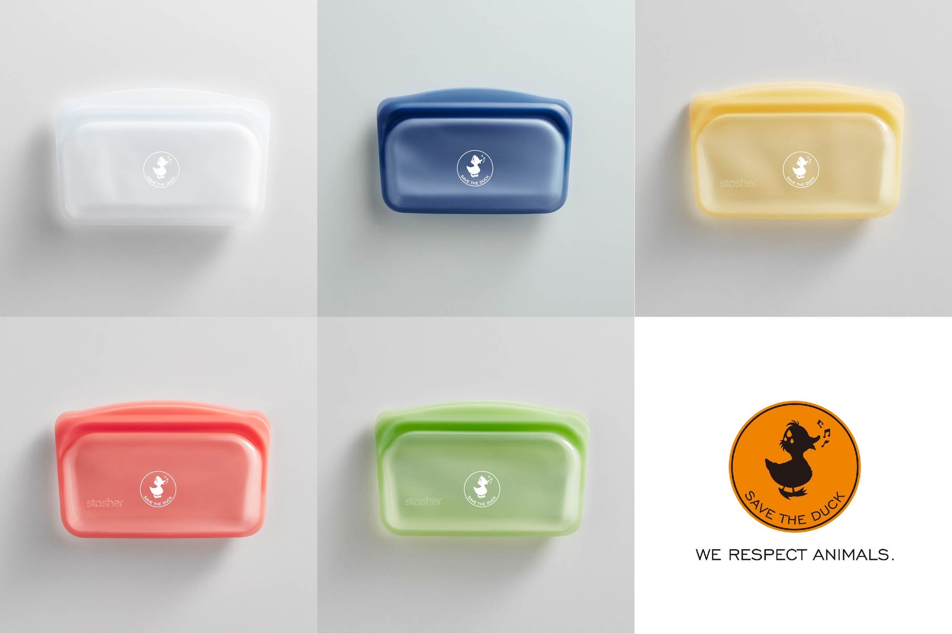 なお、本ポップアップストア開催期間中、限定のノベルティとして、SAVE THE DUCKオリジナルstasher(使い捨てプラスチック容器の代替品として開発された、洗って繰り返し使えるジップ付きのシリコーンバッグ)を進呈いたします。詳細は下記よりご確認いただけます。