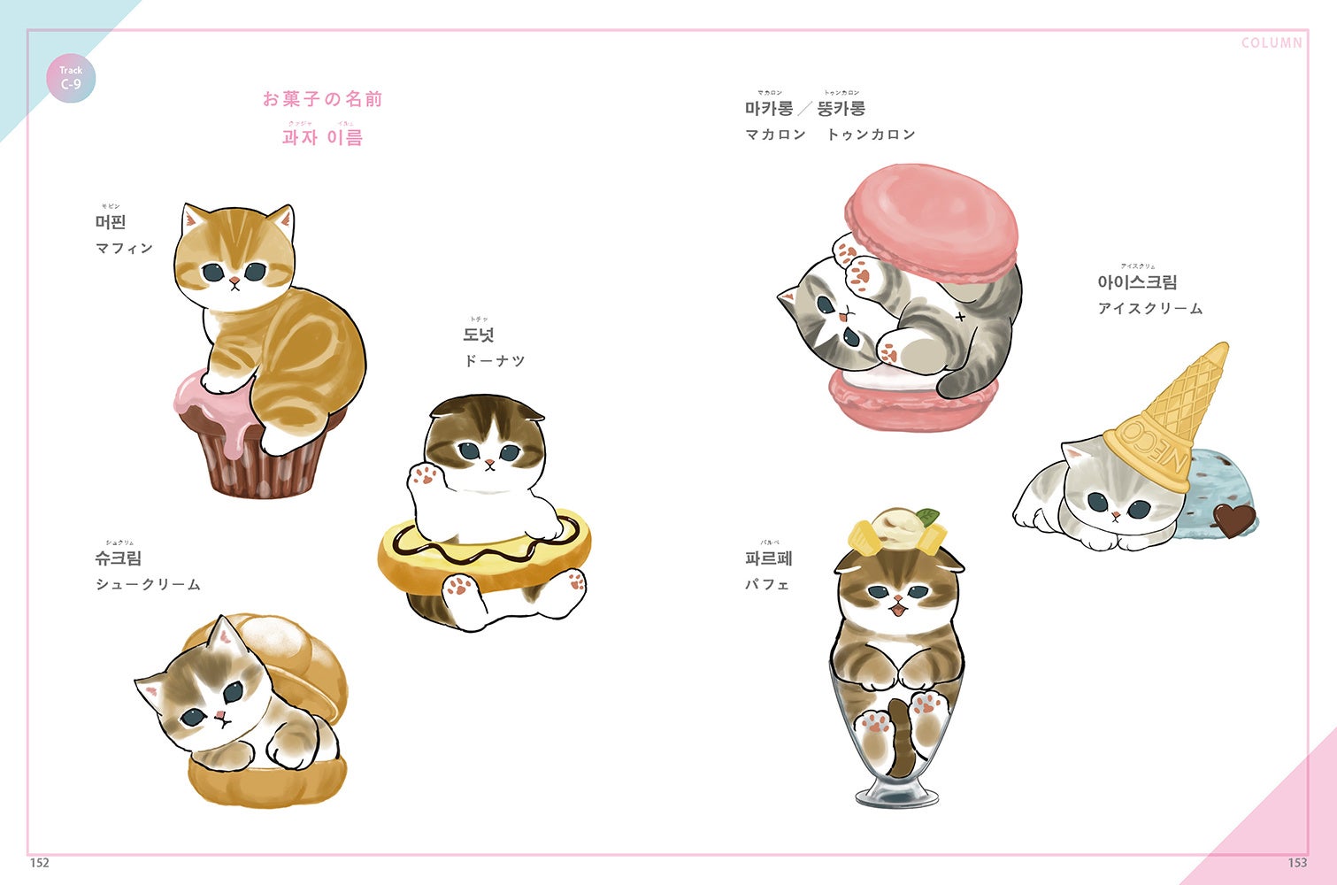 ■本書では「mofusand」のもふもふにゃんこたちといっしょに、韓国語のフレーズを学ぶことができます。
