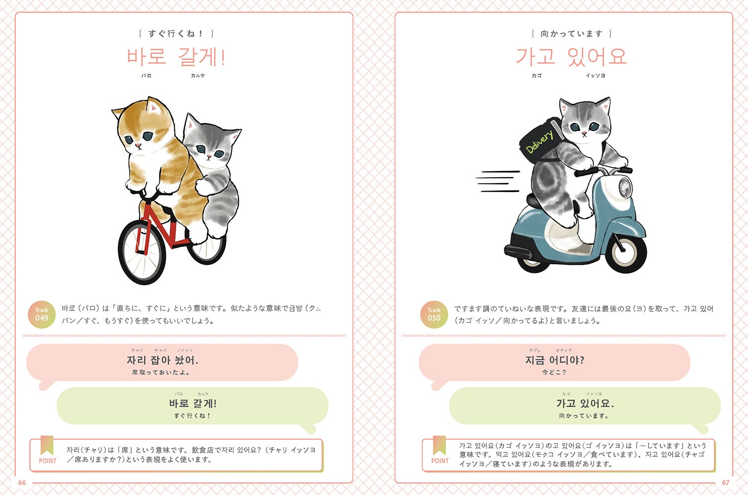 日常生活でよく使われる韓国語の表現を、シンプル&かんたんフレーズで紹介しており、かわいらしいにゃんこたちに癒されること間違いなしの一冊です。