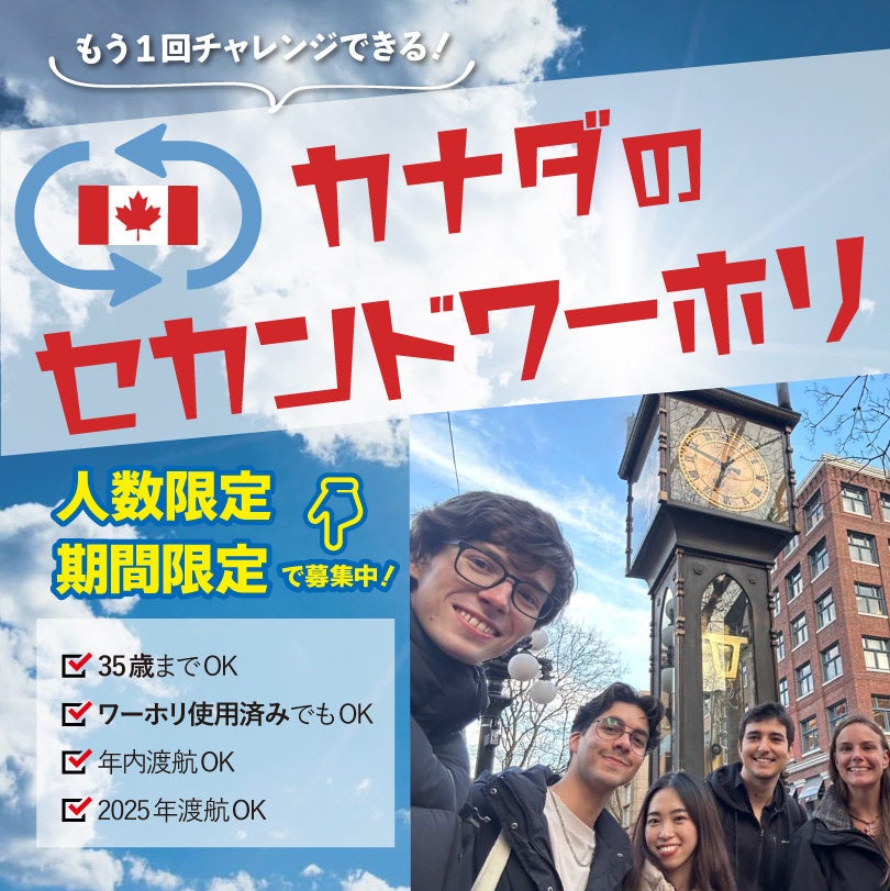 30歳を超えた方やワーホリを使い切った方にもおすすめのカナダセカンドワーホリプログラム。 誰にでも最長3年間カナダでの就労が可能。 海外出稼ぎにも使えます。