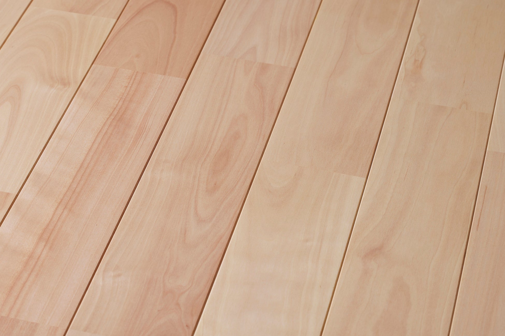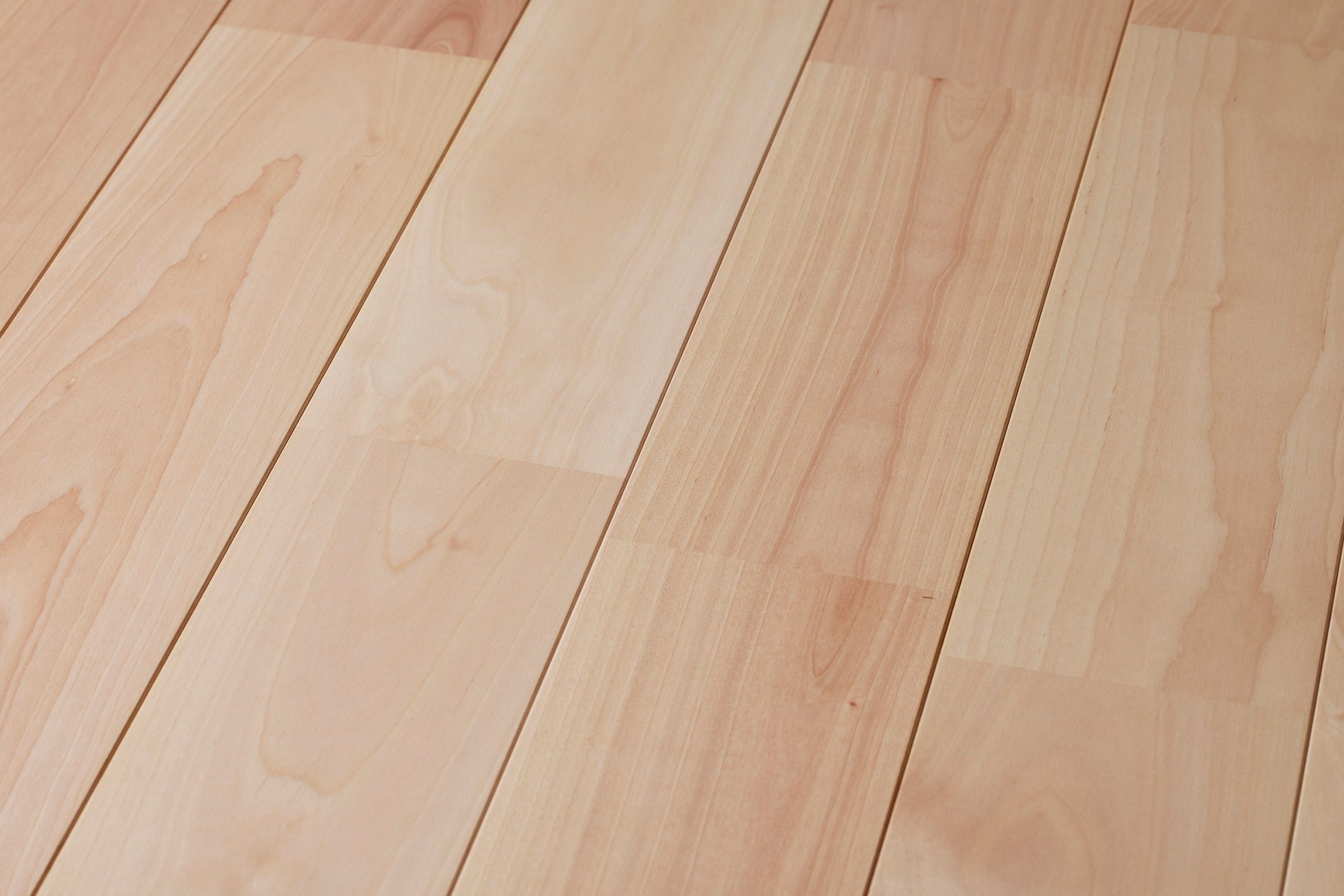 セイナンバーチ材の特徴であるほんのりとしたピンク色と上品な木目を最大限に生かすために、独自に開発したオリジナルのオスモカラーを採用しました。さらに独自の塗装方法により、仕上がりの美しさに加え、高い撥水性と保護性能を実現。家づくりを予定しているお施主様、設計事務所様や工務店様にとって、住宅や幼稚園・保育園、商業施設など多用途に対応できるフローリング材です。