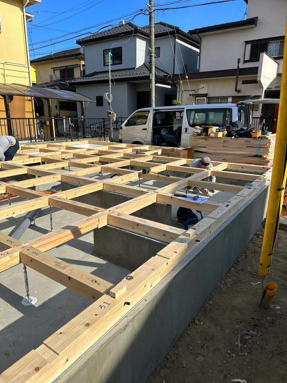 国の調査より、大工の人数は40年前と比べると3分の1へ減少しており、更に他の業種より高齢化が目立ち、大工の60%が50歳以上となっています。また、約5400万戸のうち断熱性能が省エネ基準を満たしているのは22年度時点で18%に過ぎませんでした。そこで私は、ガス排出量ゼロに近づける環境へ配慮した家づくりを、少人数で効率的に行いたいと考えるようになりました。トリプル断熱で、断熱性能等級6、一次エネルギー消費量等級6、耐震等級3を取得する施工です。また、工事において、基礎型枠をはじめ、部材の加工を弊社工房で行う事で、廃材を極力出さず、少人数で効率の良い施工する事が可能となり、職人不足問題および産廃処理への問題解決にも繋がっています。