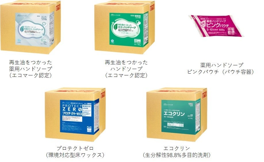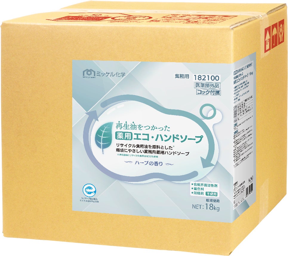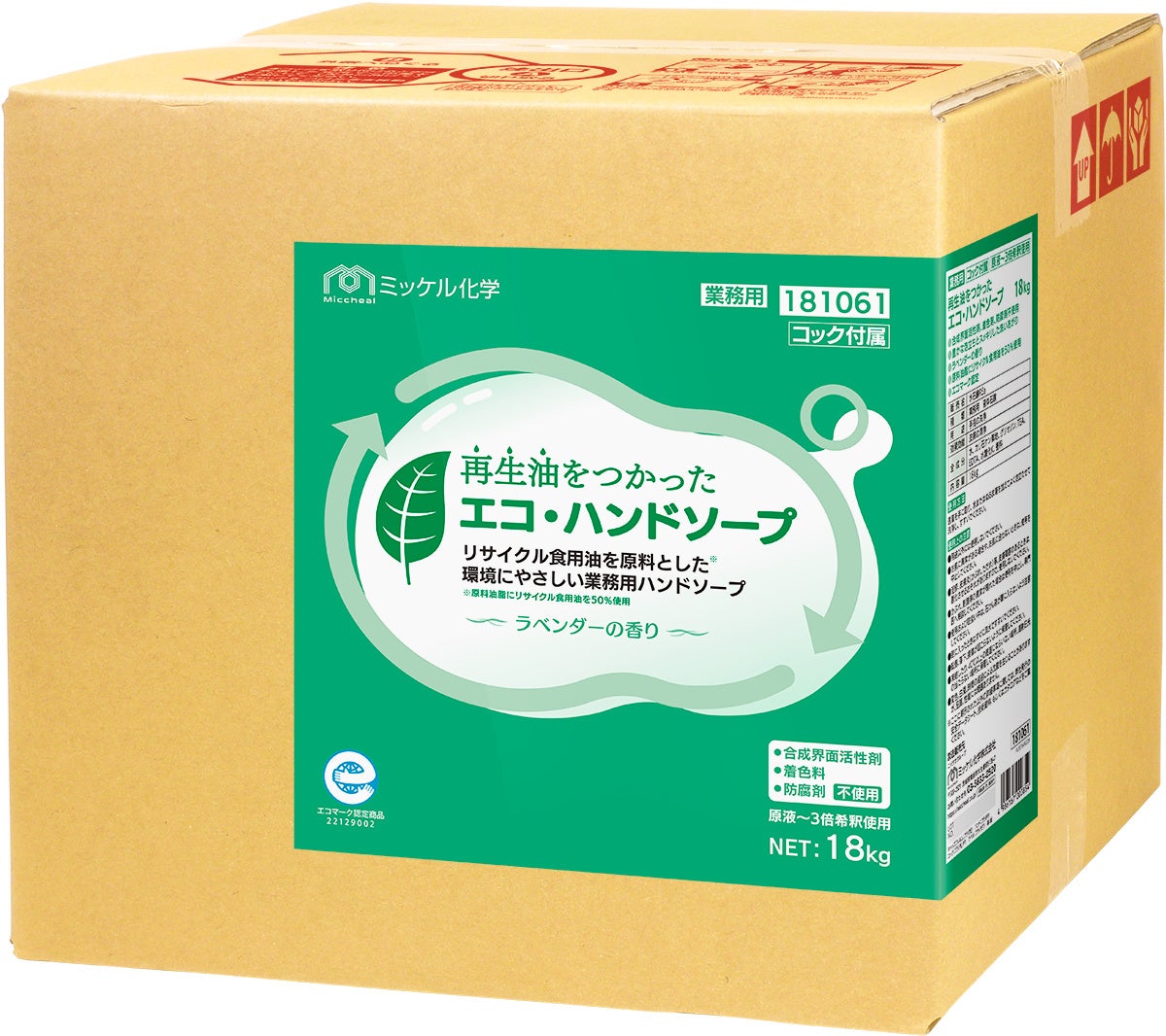 ミッケル化学は、「人と環境に優しい製品」の開発に取り組んでおり、これまでに、持続可能なパーム油原料の使用(RSPO認証)、リサイクル食用油の使用(エコマーク認証)、省資源パッケージの採用(パウチ、バックインボックス容器)、生分解性の高い製品の開発、シックハウス症候群に配慮した製品の提供、有機リン系化合物を使用しない製品の開発をしてまいりました。(次項参照)