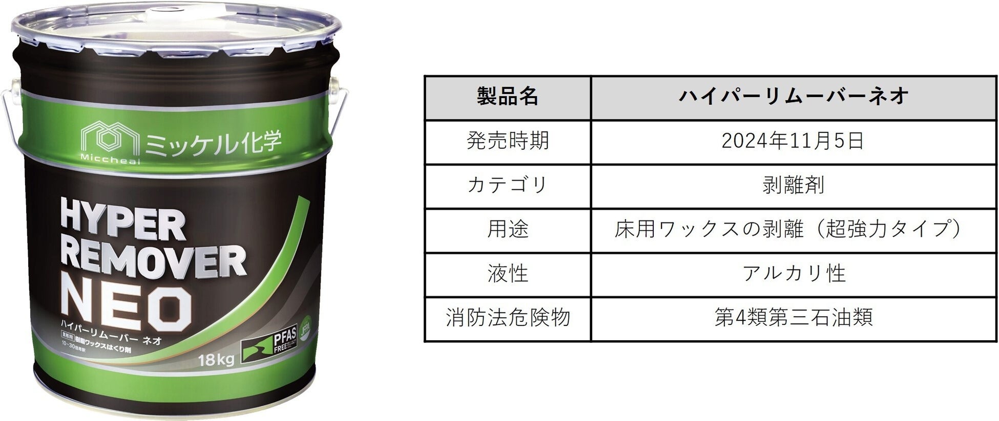 ミッケル化学株式会社(本社:東京都江東区、代表取締役:橋本 茂)は、床面の清掃・維持管理に使用される「床用樹脂ワックス」および「強力剥離剤」について、環境に有害な有機フッ素化合物(以下、PFAS)を含まない製品の開発に成功し、順次発売を開始いたします。