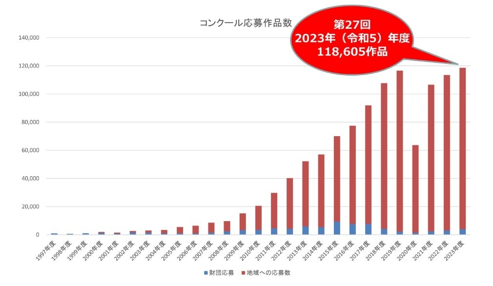 第26回で累計100万を超える作品の応募があり、第27回(2023年度)には118,605作品の応募がありました。