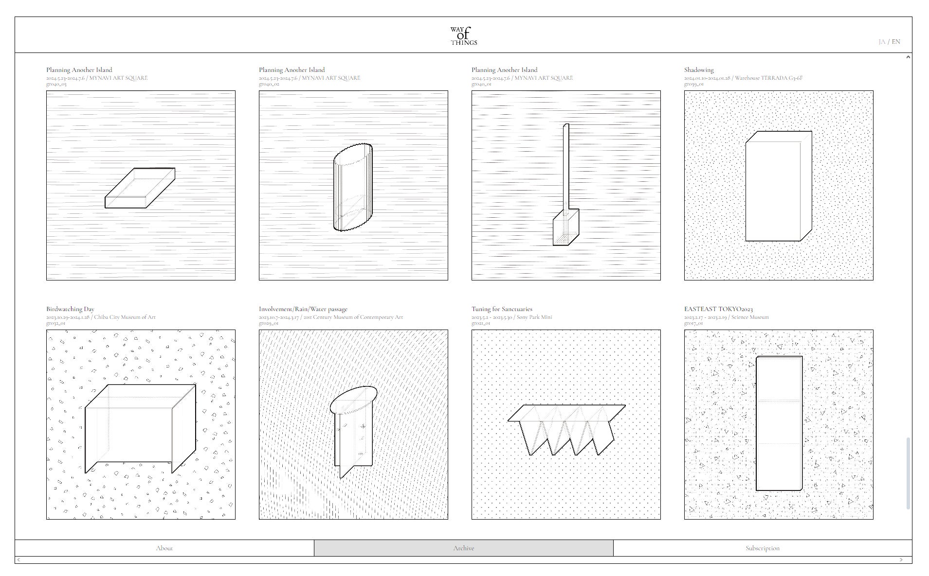 「ことの次第 / Way of Things」参加者が設計を手掛ける展覧会の最新情報を確認することが可能。公開される図面情報と共に現物を現場確認することができ、「こと」の引き取りを検討する際の参考にすることができます。