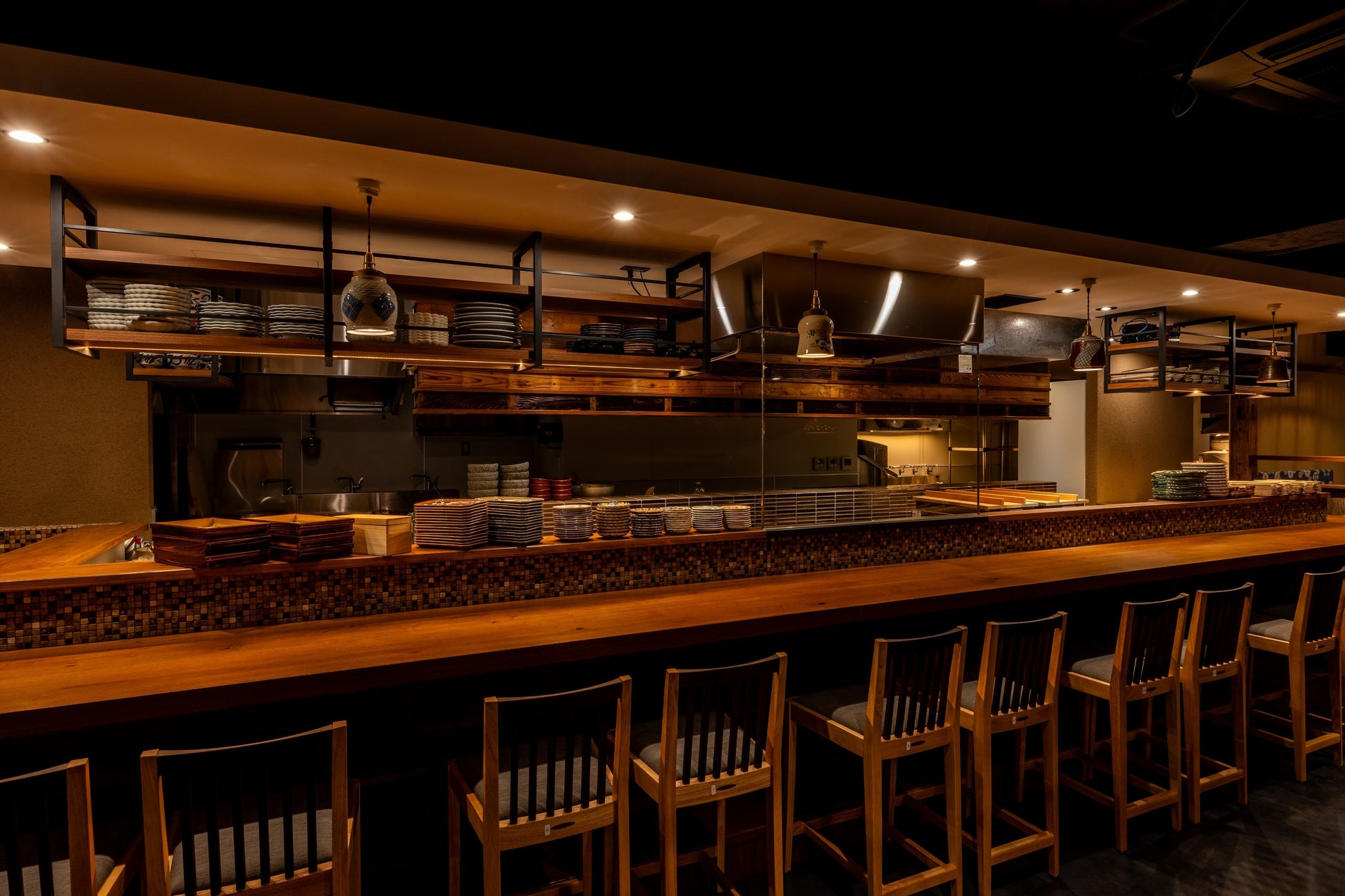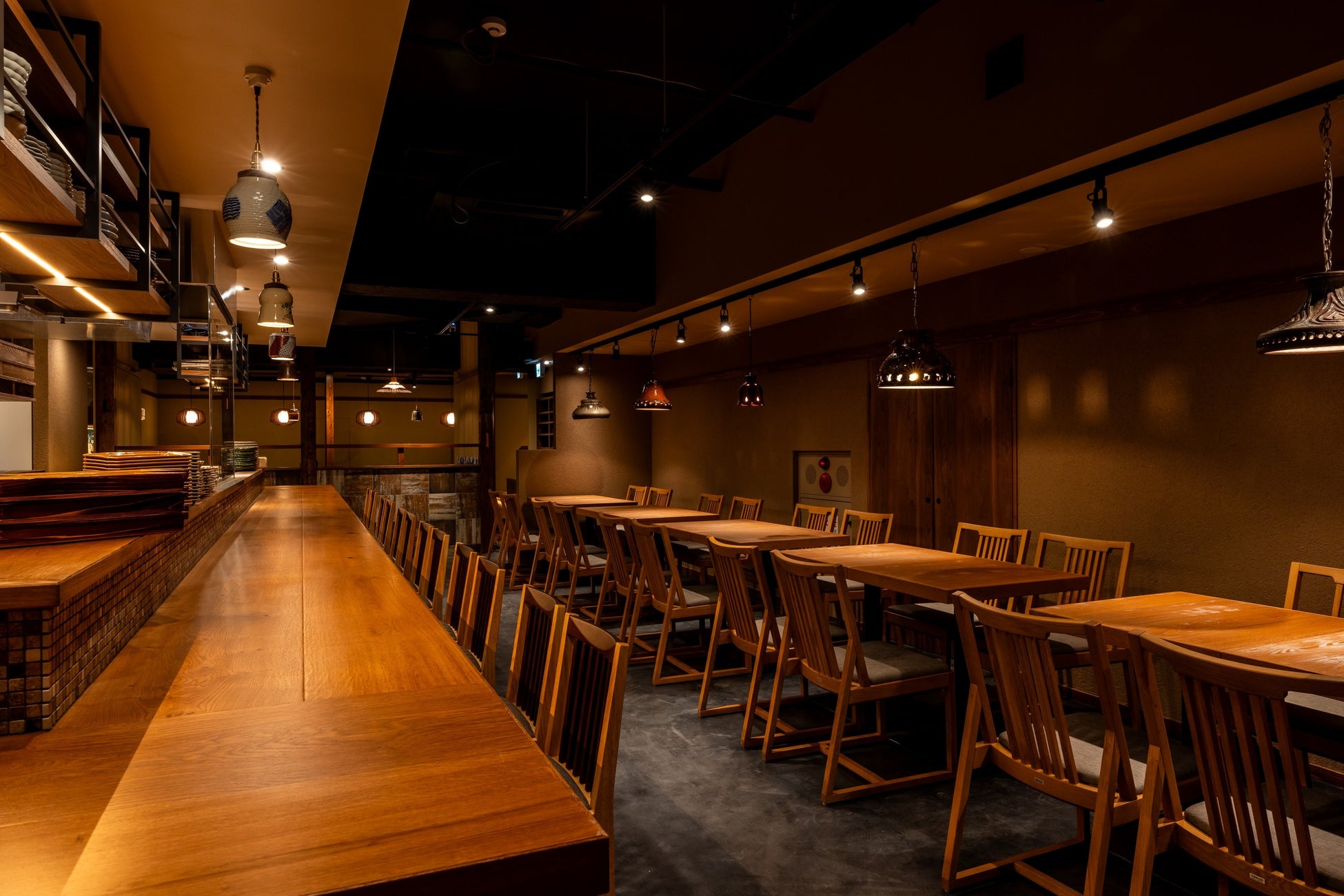 店内は、ライブ感あるオープンキッチンやおでん台を囲むカウンター席とテーブル席、座敷合わせて100席を設置。個室も完備しています。30〜40代の大人が落ち着いて食事とお酒を楽しめる雰囲気と、20代も気軽に立ち寄れる酒場の魅力も備えた居酒屋として、デートや会食、仲間との集りなど幅広いシーンでご利用いただけます。