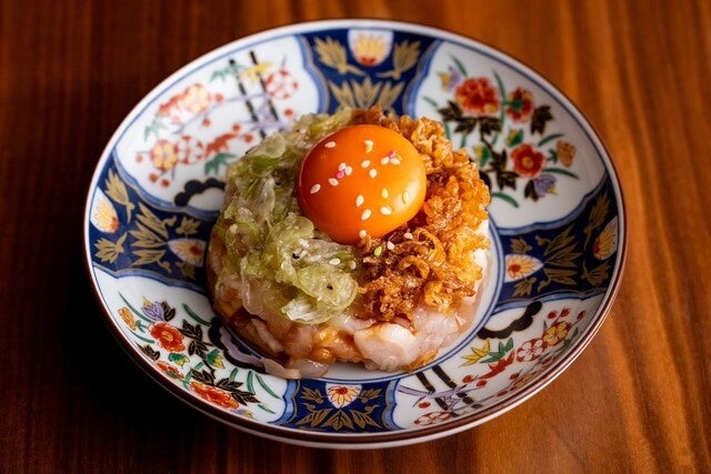炙り鳥のユッケ 赤卵のせ 1,089円