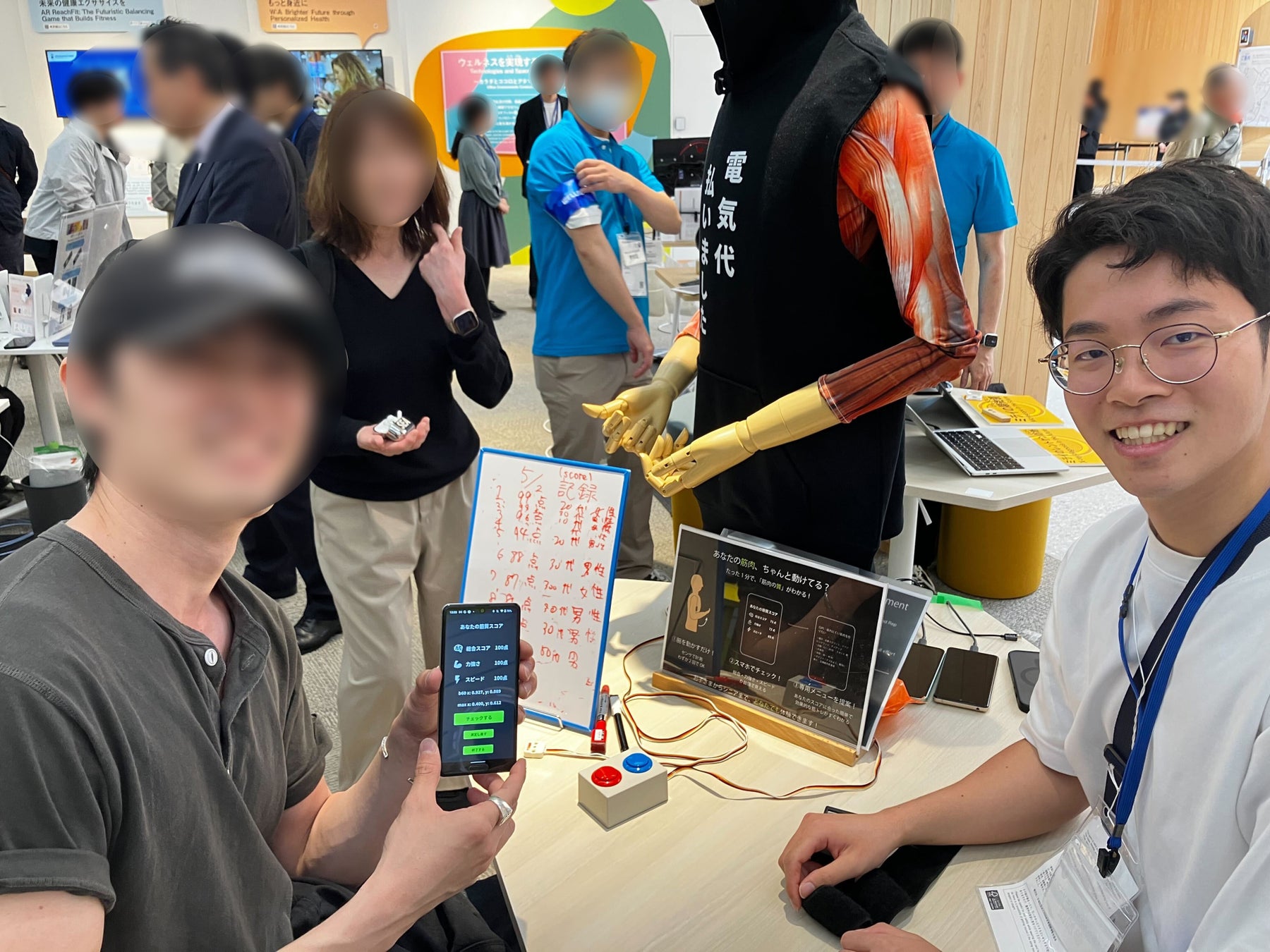 マッスルブループリンツ株式会社(英語表記 Muscle Blueprints, Inc.,本社:東京都渋谷区,代表:衣笠竜太)は、2025年国際博覧会(大阪・関西万博)の「大阪ヘルスケアパビリオン」にて、筋電センサ『筋肉Phone』の体験展示を行いました。「筋肉の質」スコア(=筋質スコア)をわずか1分で可視化できる独自技術により、7日間で1,700名超が体験、最大40分待ちの行列ができるほどの注目を集めました。