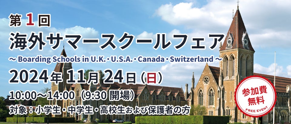 株式会社日本入試センター (本社:東京都渋谷区/代表取締役社長:髙宮英郎) が運営する海外進学プログラム Y-SAPIX Global Campus (以下、YGC) 、アメリカに本部を構え、アメリカ・カナダ・スイスのボーディングスクールの留学支援を専門とする Triple Alpha は、これまでに3,000人以上の生徒をイギリスの名門パブリックスクール (寮制の中等教育機関) に送り出してきた BE Education とともに、「第1回 海外サマースクールフェア」を開催します。