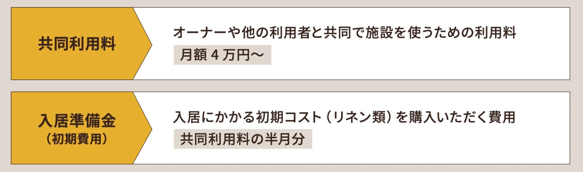 例えば、月額4万円の部屋を1年間利用する場合、以下の費用がかかります。