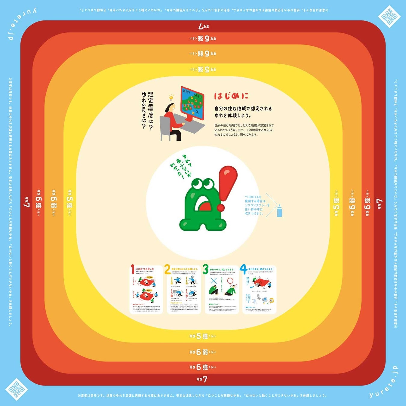 どこでも地震体験マットYURETA体験の手順(YouTube)