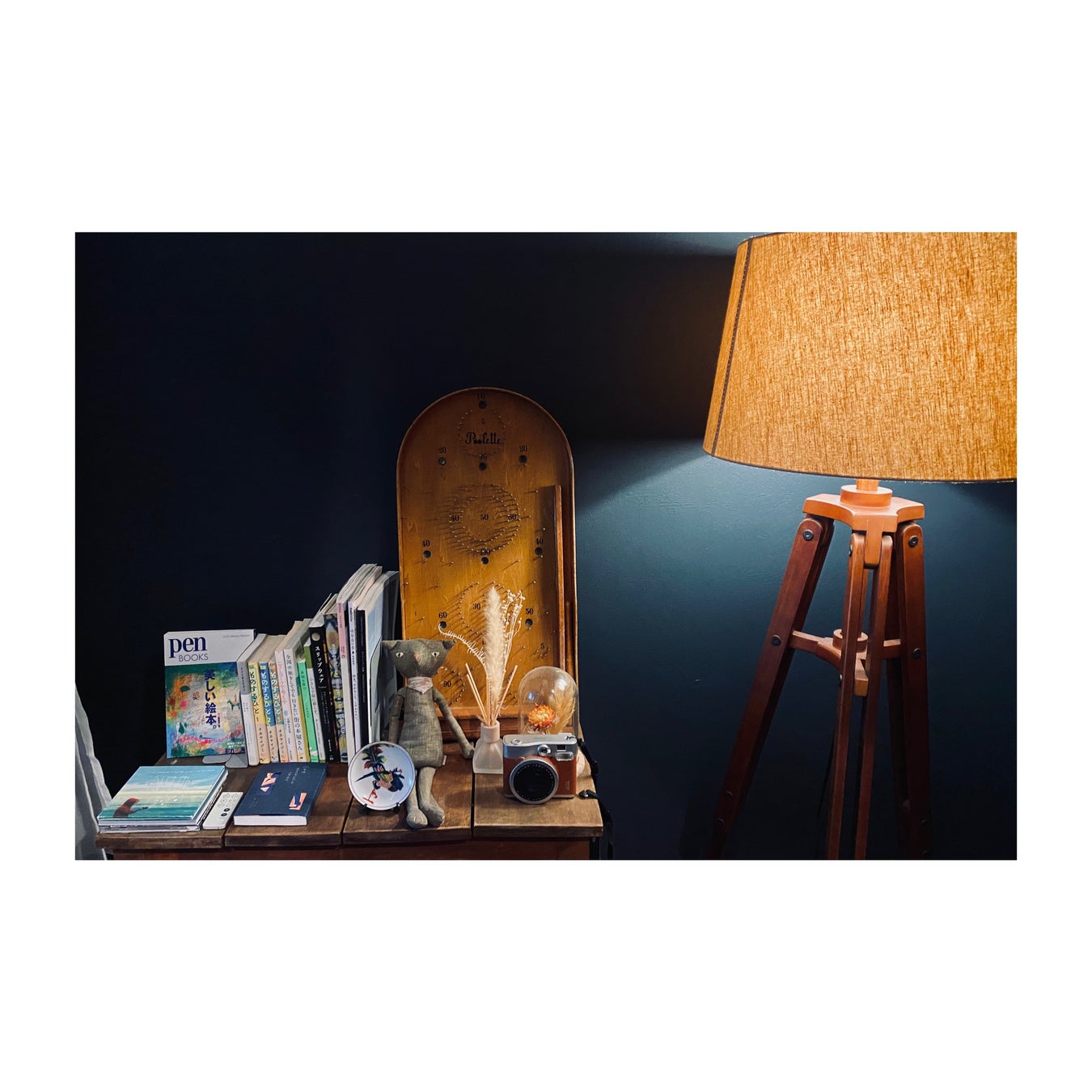 リビングと寝室を緩やかに区画したゆとりのある空間を、世界中から集めたヴィンテージの家具・雑貨や、アート・インテリア・暮らしを中心とした本や雑誌で包み込み、穏やかな時間を演出しています。