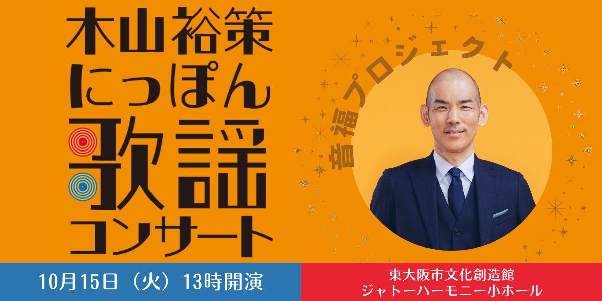 株式会社SHINDEN(本社:大阪市中央区 代表取締役:中本 築)は、歌手の木山裕策氏ご協力のもと、「音楽」と「福祉」を融合させた「音福(おんぷく)」プロジェクトを始動し、第一弾となる『木山裕策 にっぽん歌謡コンサート』 を2024年10月15日(火)に開催いたします。