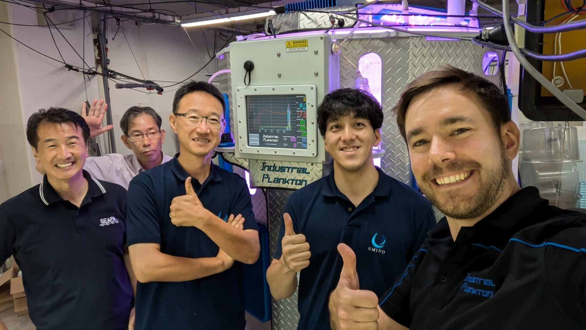 2024年1月に標準機PBR1250Lが日本で初めて設置されてから、この1年半に多くの企業が導入しています。一部は高付加価値の原料生産用に使用されていますが、多くは上記のような水産(種苗生産)用途で採用されています。北海道から沖縄まで設置され、稚貝、稚エビ、稚ウニなどに健康でクリーンな藻類を大量に食べさせ、作業者のみなさんの負担を大幅に軽減しています。