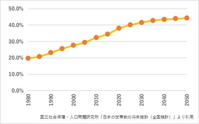 国立社会保障・人口問題研究所が公表した日本の世帯数の将来推計では、世帯総数が2030年をピークに減少に転じて、世帯の単独化や近親者のいない単独世帯化が一層進むと推測されております。2050年には平均世帯人数は1.92人、単独世帯の割合は44.3%になるといわれており、孤独死問題がより一層深刻化するため、早期対応を行わなければなりません。