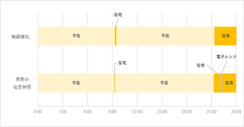 結 果:在室及び不在状況を下図例の通り正確に検知し、期待通りの効果が得られた。