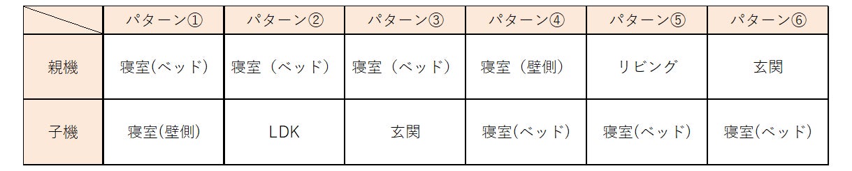 6パターンにて機器を設置し、設置個所による検知精度の差異を実際の在室有無と比較。