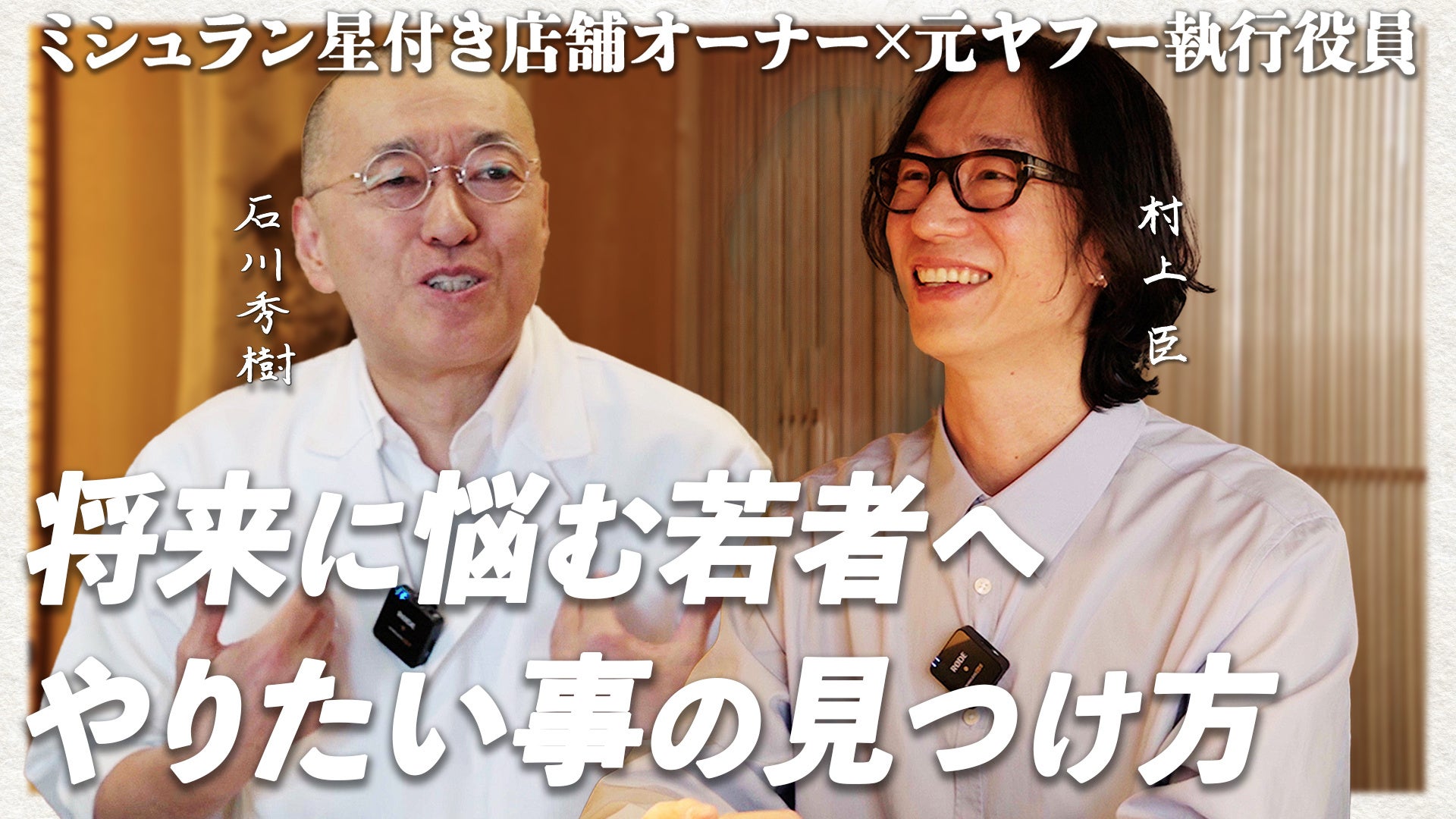 IT業界でたくさんの実績を残している村上臣 氏と、今年で16年間ミシュランガイド東京版の三ツ星を獲得し続けている神楽坂石かわを始めとするI1Company石かわグループを経営している石川秀樹。