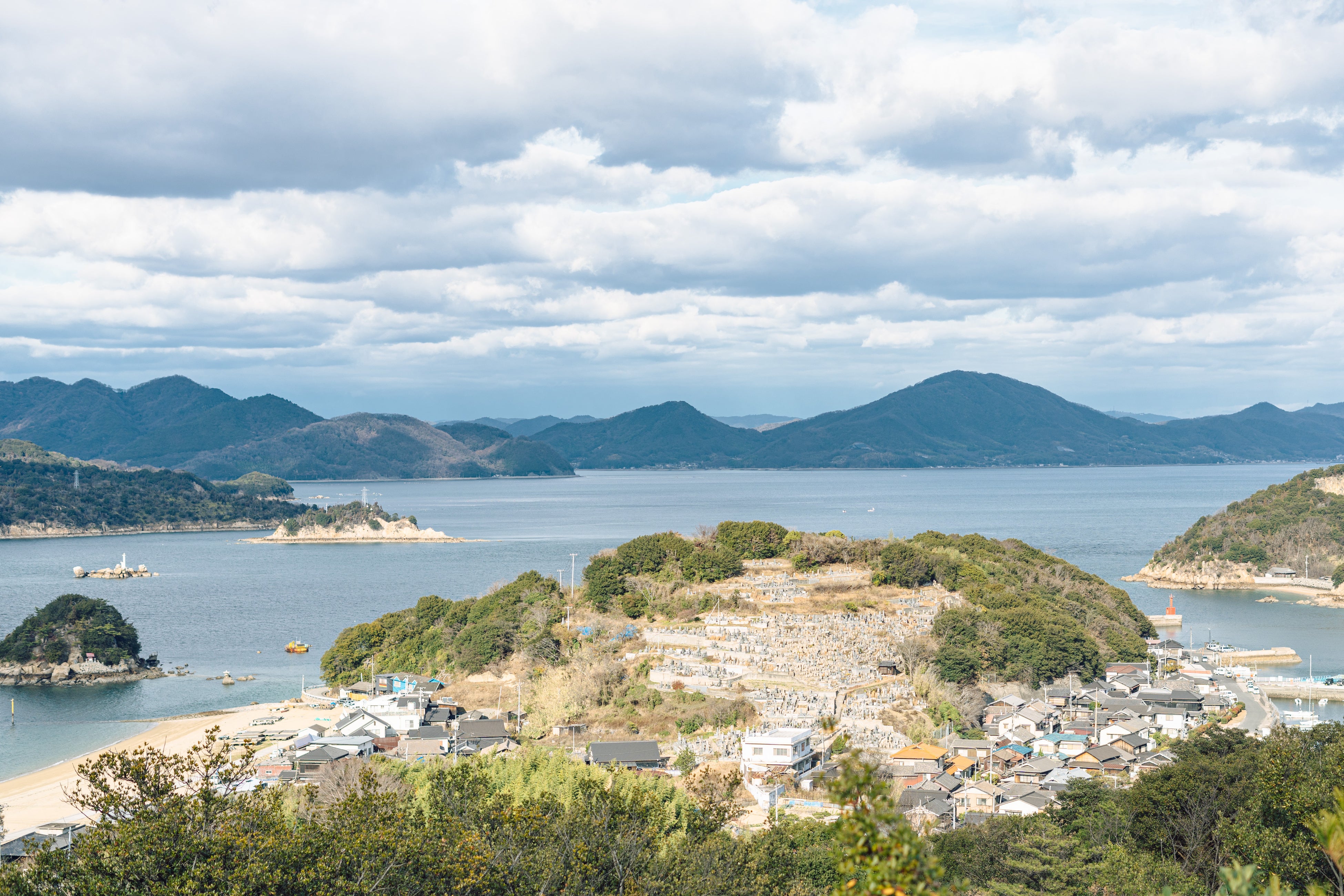 岡山県の南西部に位置し、瀬戸内海に面した笠岡市。市の南には、広大な笠岡湾干拓地と大小32の島々からなる笠岡諸島が広がっています。「生きている化石」とも呼ばれる絶滅危惧種のカブトガニが生息することでも知られ、神島と西大島間の海域は、国の天然記念物に指定されています。