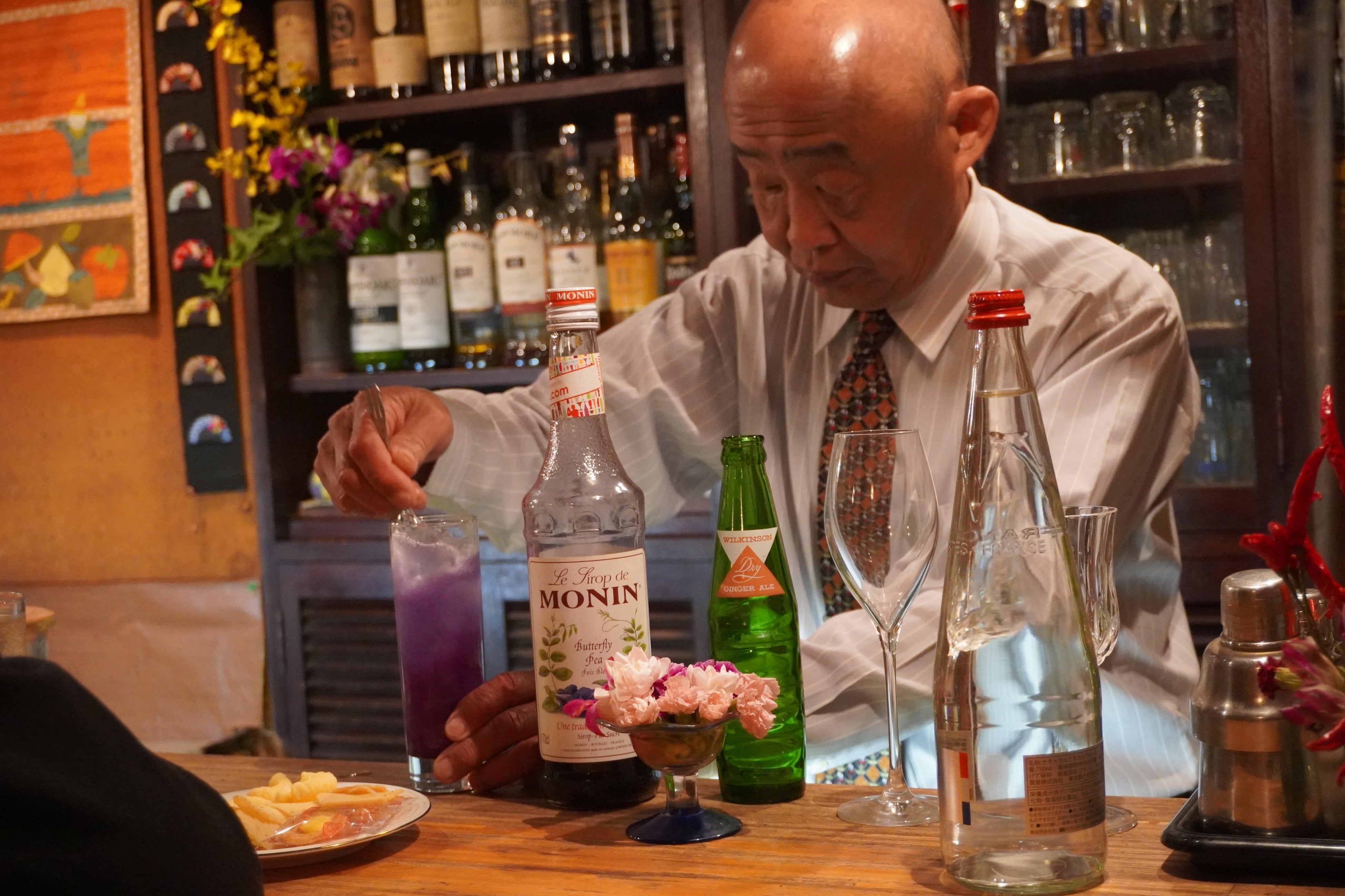 女性バーテンダーの草分け的存在・平松慶子さんが昭和43年に創業。笠岡市内の最古参店です。深紅のヴェルベットが印象的な店内はスナック文化の王道。現在は長男の和彦さんが2代目を継承していますが、ツアー当日は特別に初代慶子ママが当時のリアルを語ってくれます。