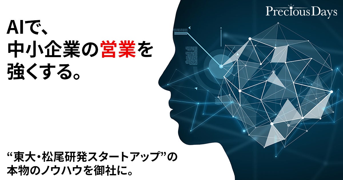 プレシャスデイズ、東京大学松尾研発スタートアップと共同で中小企業の営業力向上に特化した生成AI導入研修サービスを7/24(水)より提供開始。助成金を活用し定価の最大75%OFFで導入可能。