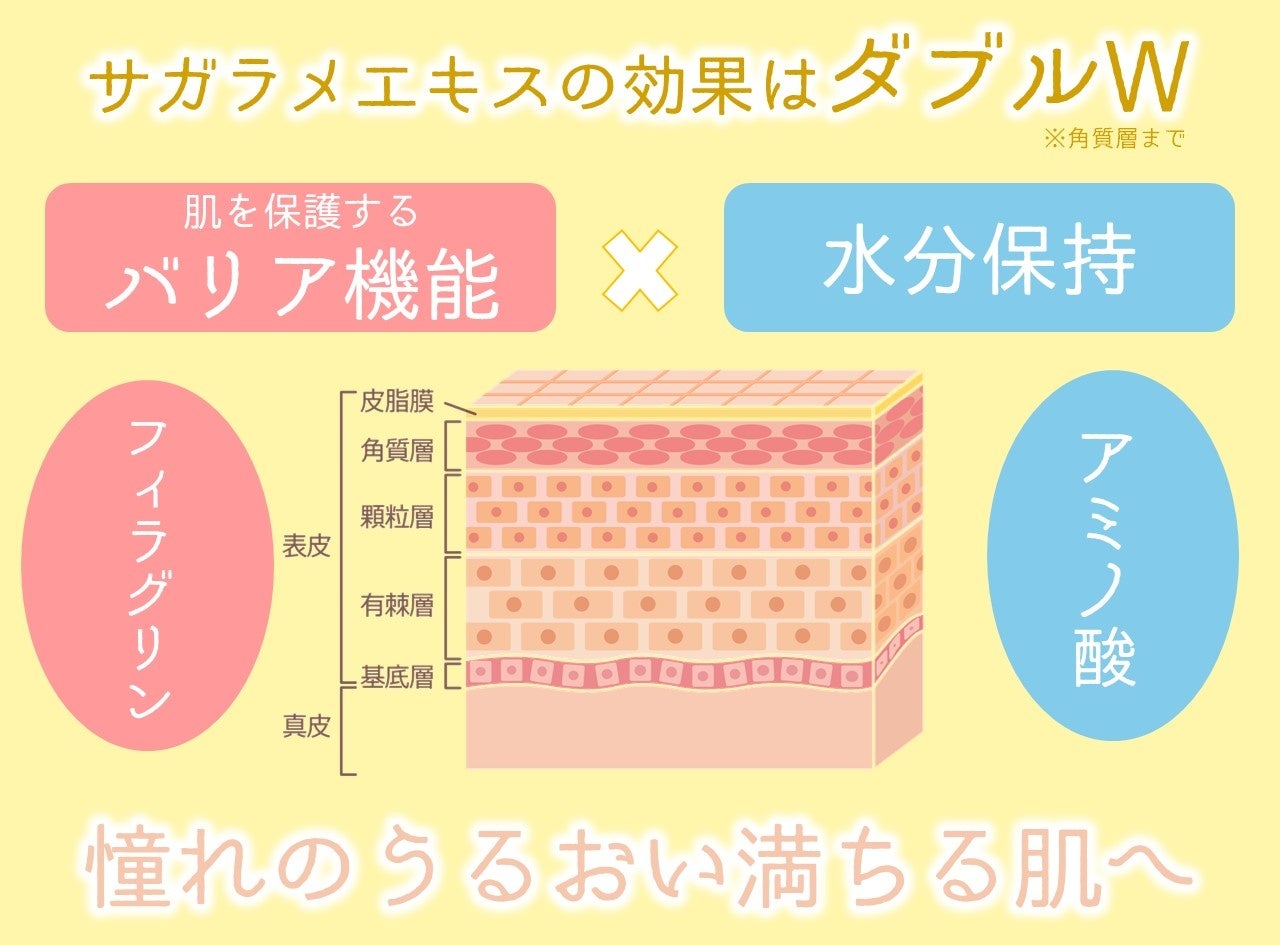 さらにフィラグリンがアミノ酸へ分解されることによって皮膚内の水分を保持する効果が期待できます。