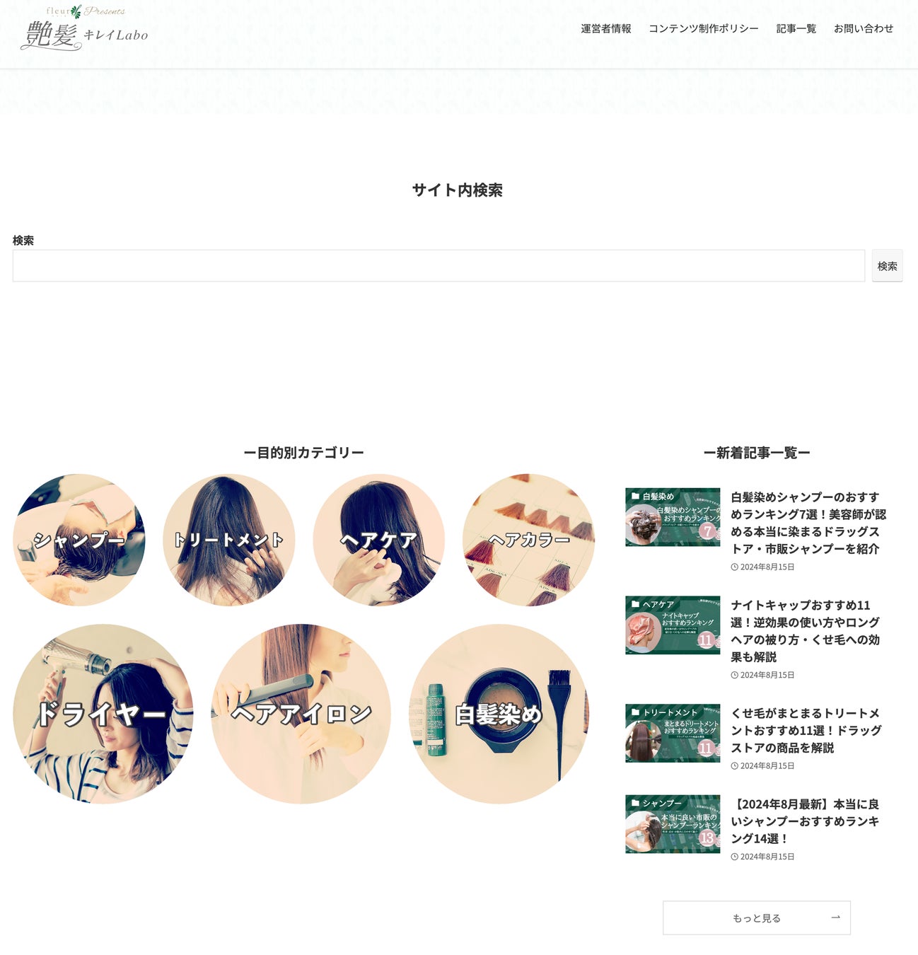 艶髪キレイLaboは目的別にカテゴリ分けをしており、読者様の悩みに応じて選択をしていただけるようなサイト設計を行っております。
