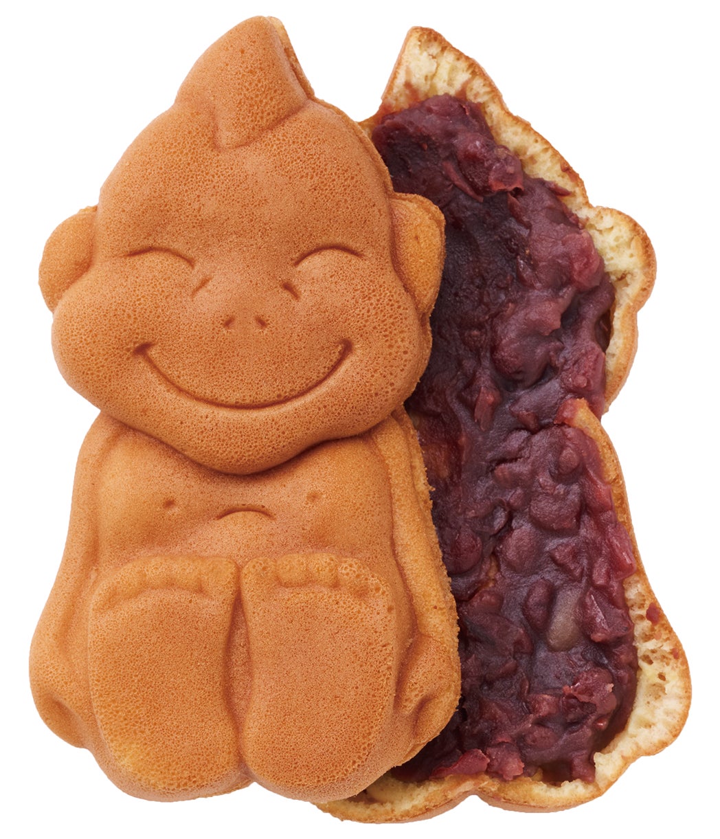 ミックスジュース480円(税込)、ソフトクリーム480円(税込)のほかに今回リニューアルするにあたり新発売されたのが「ビリケンさんしあわせ焼」 350円(税込)です。通天閣のシンボルキャラクターでもあるビリケンがモチーフとなった和スイーツで、北海道産小豆と濃厚カスタードの2種類の餡を販売。こちらも季節ごとに限定餡が加わります。