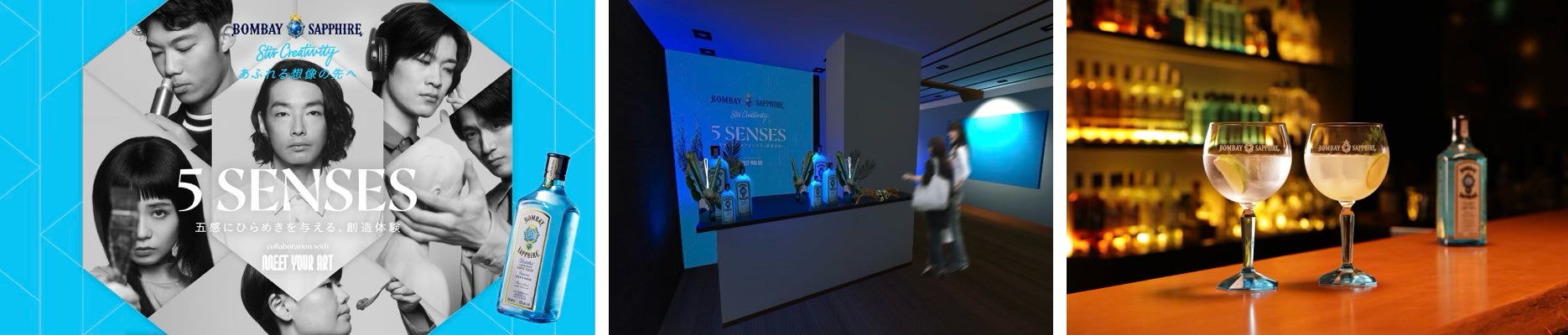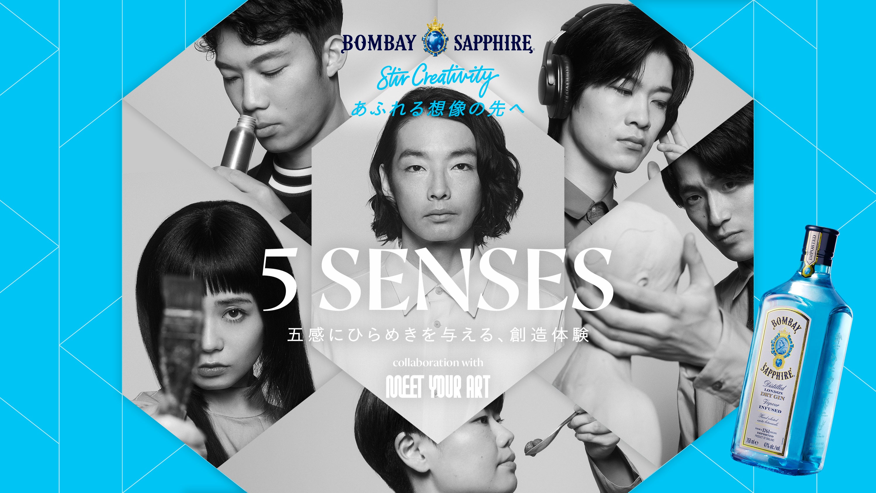「日々の想像やひらめきから創造力を引き出すことで、⼈⽣はより豊かになる」という想いのもと、ボンベイ・サファイアは人々の想像を解き放ち、創造力をかきたてる存在でありたいと考えています。今回、新たな手法でアートやアーティストの可能性を拡張しているアートプロジェクト『MEET YOUR ART』をコラボレーションパートナーに迎え、共創プロジェクトを始動。「五感」をコンセプトにした5名のアーティストの創造的な作品との出会いによって、人々の想像を解き放ち感性を刺激して、五感にひらめきを与える創造体験をお届けしていきます。