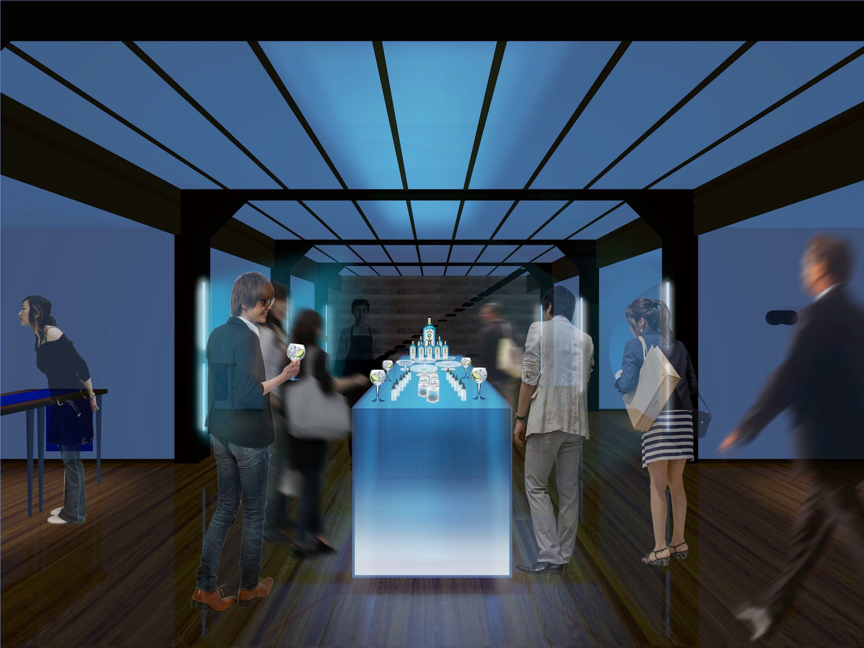 1階はアート×バー エリアとなっており、5名のアーティストがボンベイ・サファイアからインスピレーションを受け制作した、あなたの想像力をかきたてるような作品を、特製のオリジナルカクテルとともにご堪能いただけます。