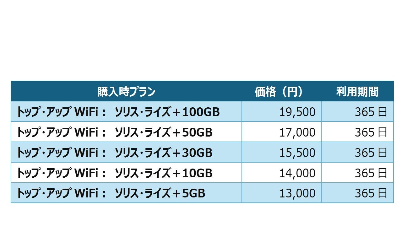 購入時初期データもトップ・アップ用の追加データもすべて日本国内プラス海外プランです。これ1台ですべてが完結。契約不要、海外Wi-Fiレンタルも不要。モバイルWi-Fiルーターは、「自由に使えるあなたのWi-Fi=トップ・アップWiFi」 の時代です。
