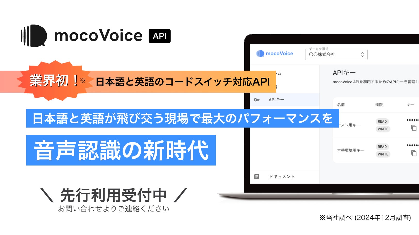 mocomoco株式会社の提供する高性能音声認識AI「mocoVoice API」の対応言語に英語が追加されたことをお知らせいたします。